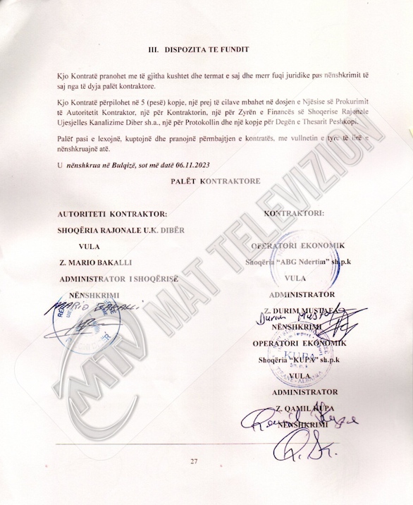 Kryetari i Bashkisë Mat, Agron Malaj, i përgjigjet duke hedhur poshtë si të pavërtetë edhe akuzën tjetër e ngritur ndaj tij në emisionin investigativ “Piranjat”, ku akuzohet se kompania “ABG”, që ka punuar për llogari të biznesit që administrohet nga vëllai i tij, ka marrë tender në Bashkinë Mat, për një borxh 600 mijë euro. Përmes fakteve dhe dokumenteve Malaj sqaron opinion publik se kompania “ABG” nuk ka marrë asnjë lloj pune nga Bashkia Mat. Por puna e kësaj Kompanie lidhet me AKUM në drejtorinë e Ujësjellës-kanalizimeve, e kontaktuar nga kompania “KUPA” për vetëm 10 % të punimeve. Dhe për këtë Malaj i referohet dokumentit zyrtar të kontratës së kompanisë “ABG”, ku nuk rezulton asnjë firmë e nënshkruar nga kryetari i Bashkisë Mat, apo administratës së saj, duke e quajtur tërë këtë akuzë, një baltosje.